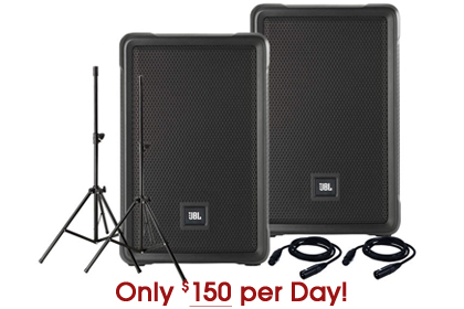 JBL IRX-112BT 12" PA Speaker Pair with Stands Rental